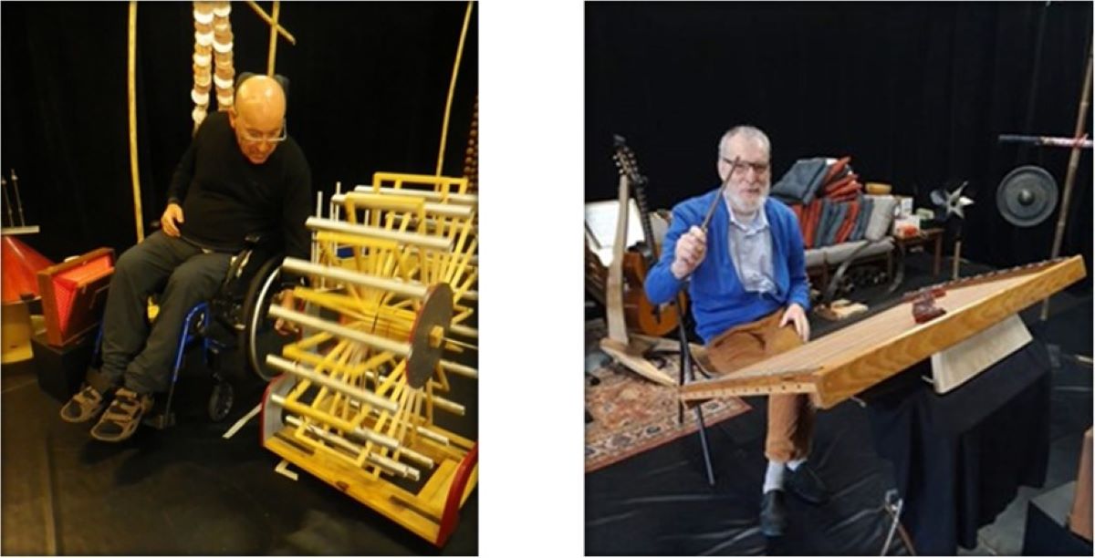 Afin d’accentuer le sentiment de s’évader du quotidien pour les résidents de la MAS, tous les ateliers se sont déroulés dans le studio de la compagnie Itinéraire Bis, au milieu des instruments éclairés par les spots, comme sur une scène. Ils ont été dirigés par François Cailliot (musicien et responsable du projet) et Manu Kluk (ingénieur du son).