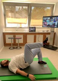 - facilement réalisables sans matériel (étirements, renforcements, réveil musculaire, postures à adopter, etc.), effectués au domicile, les patients restant encadrés, grâce à un système à distance de « visio-conférence » sécurisée.