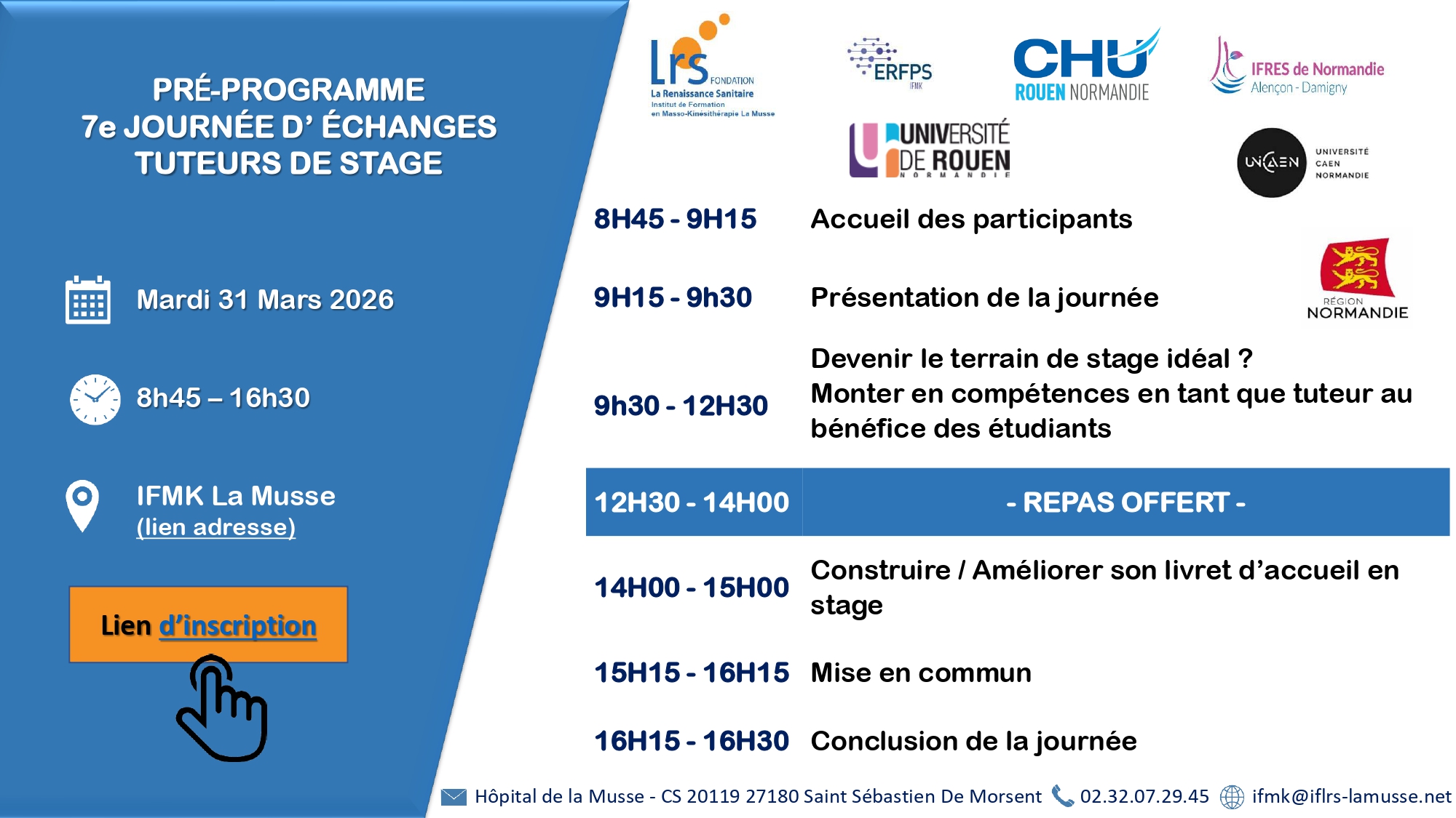 Les équipes pédagogiques des Instituts de formation La Musse en ergothérapie, masso-kinésithérapie et d’audioprothésistes vous convient à leur journée Portes Ouvertes du vendredi 6 février 2026.